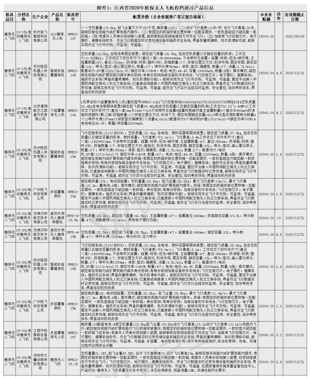 江西省關于2020年植保無人飛機和農機新產品信息公告