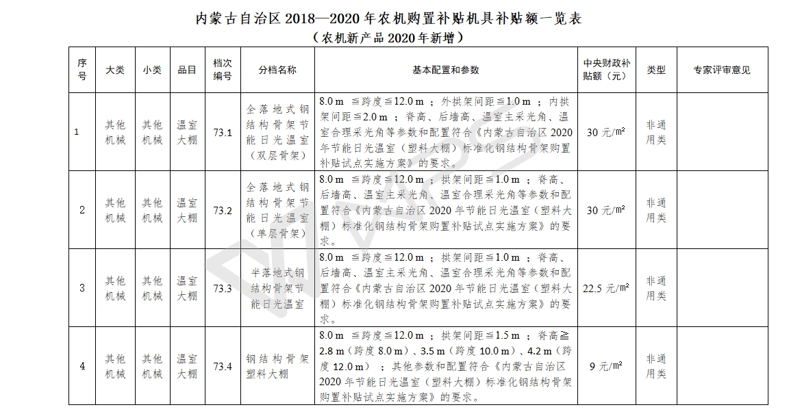 內蒙古自治區農牧機購置補貼機具補貼額一覽表(農機新產品2020年新增)的公示
